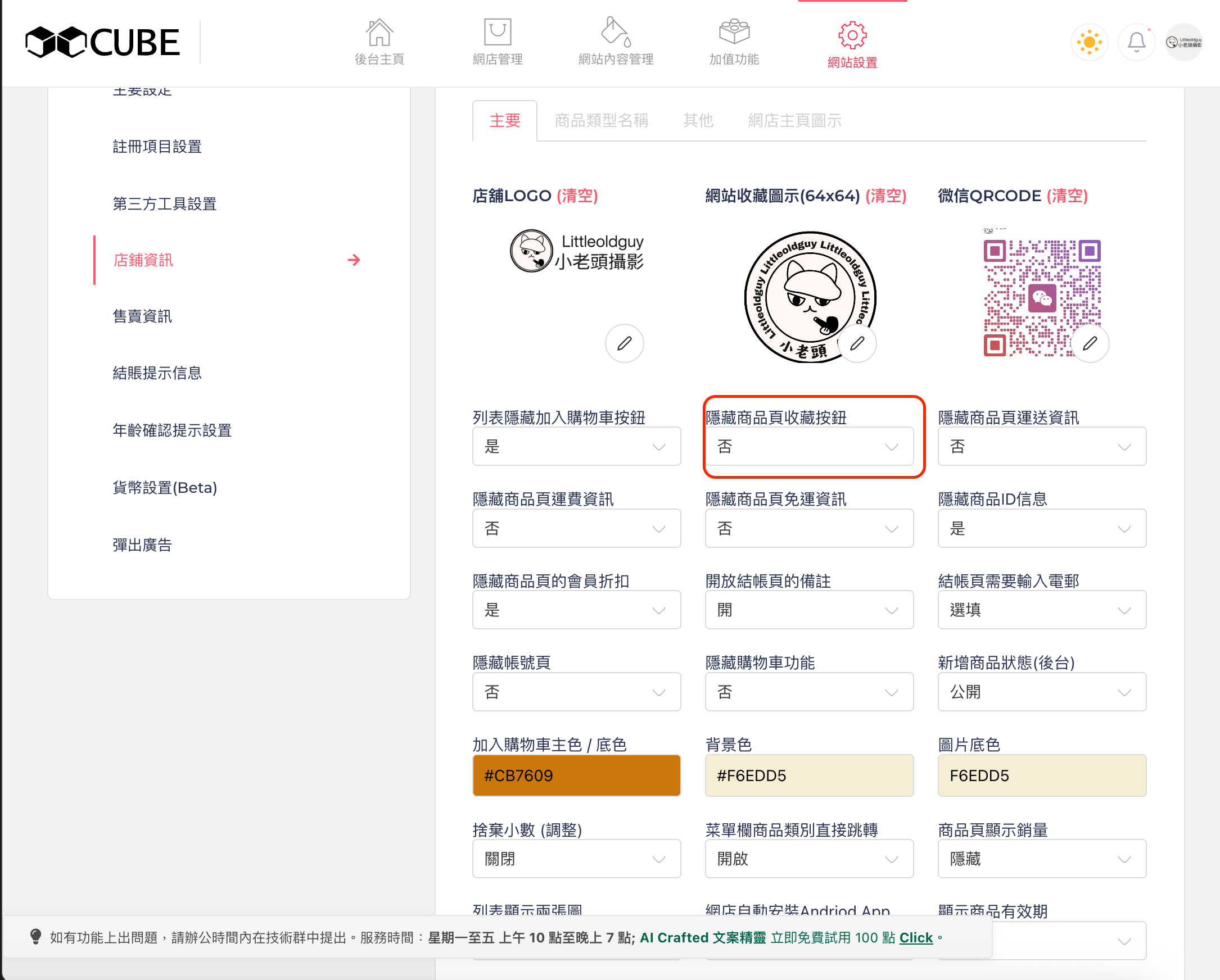 \&#xNAN;**「網站設置」** -> **「店鋪設置」** -> **「店鋪資訊」**