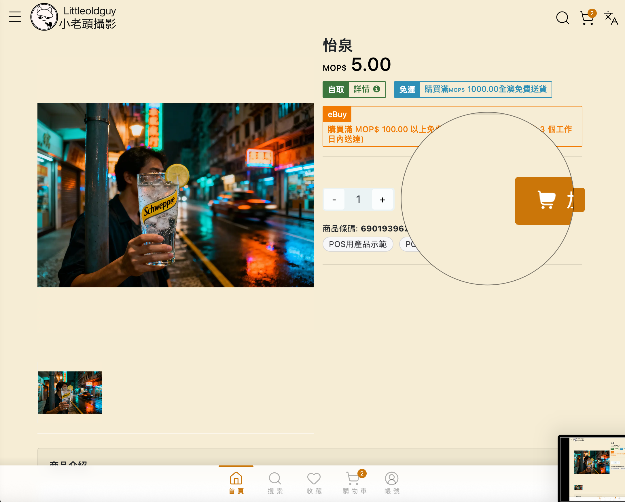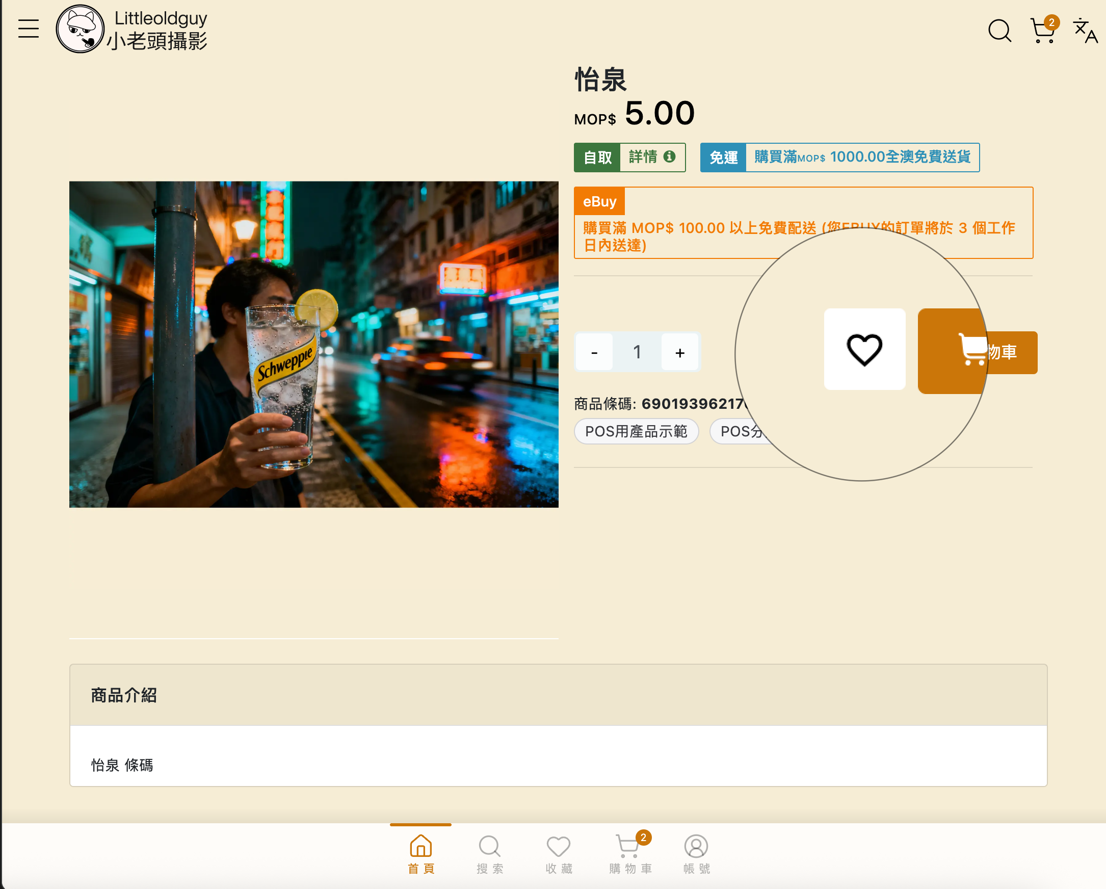 顧客在瀏覽商品時，可直接點擊標題旁的「愛心」圖示進行收藏。