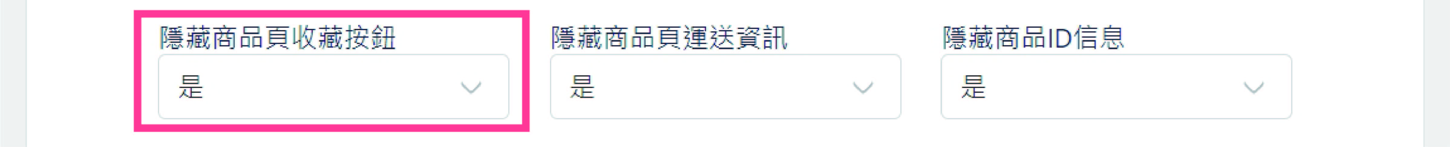 在頁面中找到 **「隱藏商品頁收藏按鈕」** 選項。