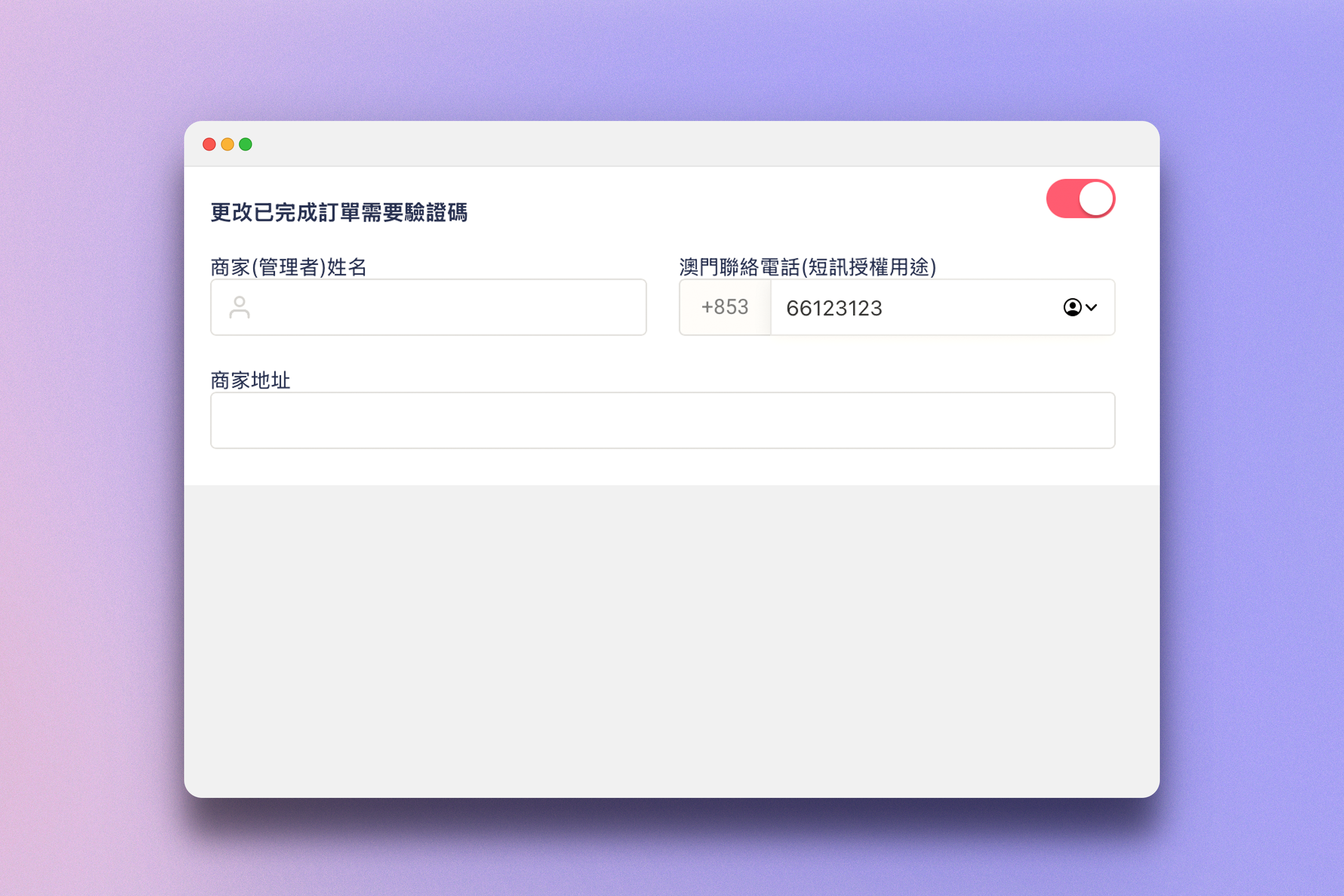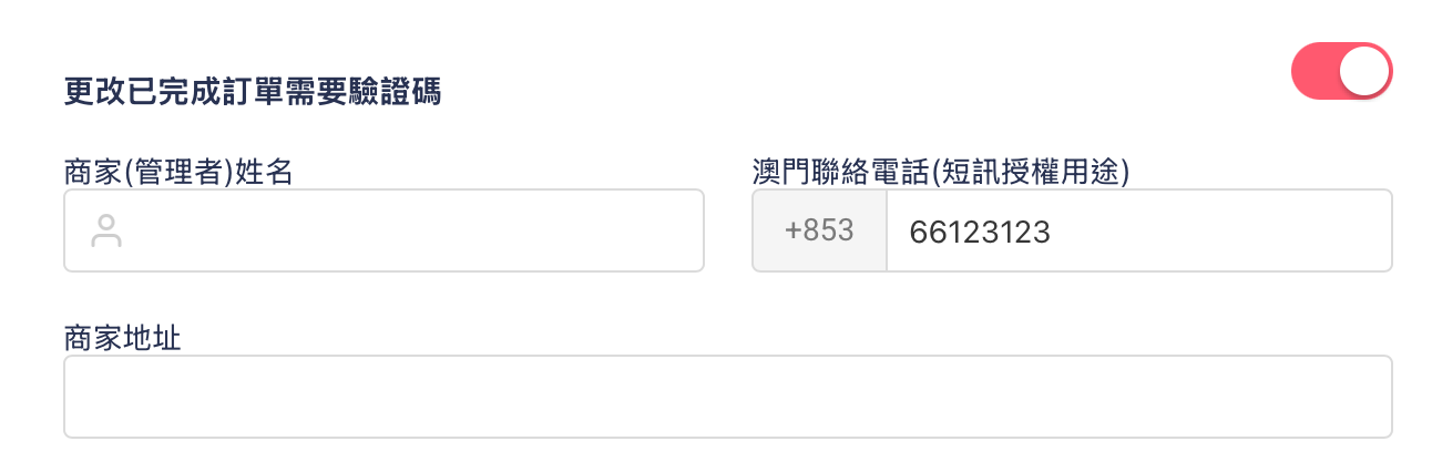 啟用本功能後,商家若需修改已標記為「已完成」的訂單,系統將要求輸入驗證碼進行身份確認,以防止誤操作或未授權行為。